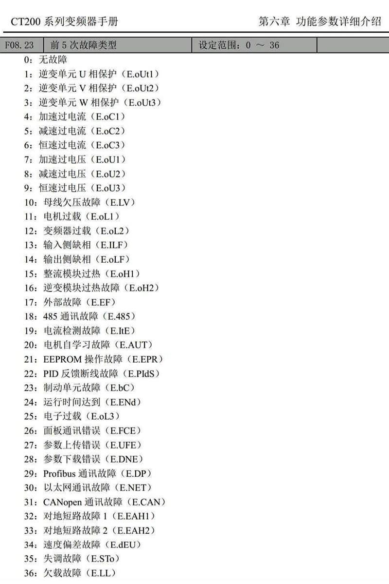注:變頻器故障原因及對(duì)策見(jiàn)變頻器用戶手冊(cè)